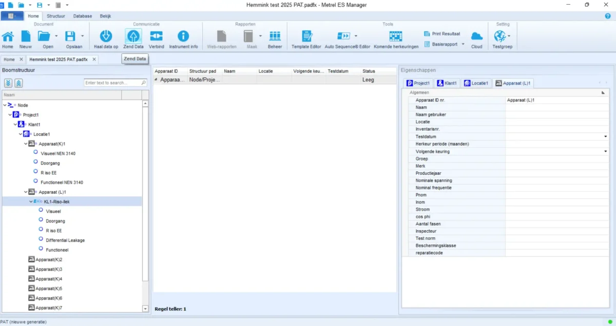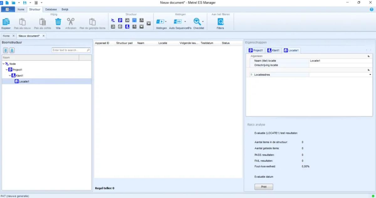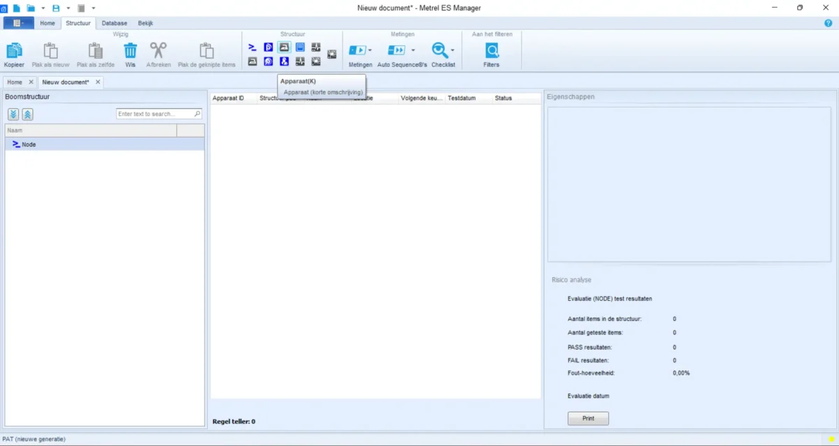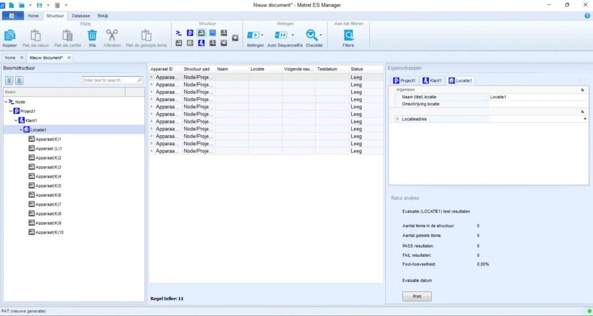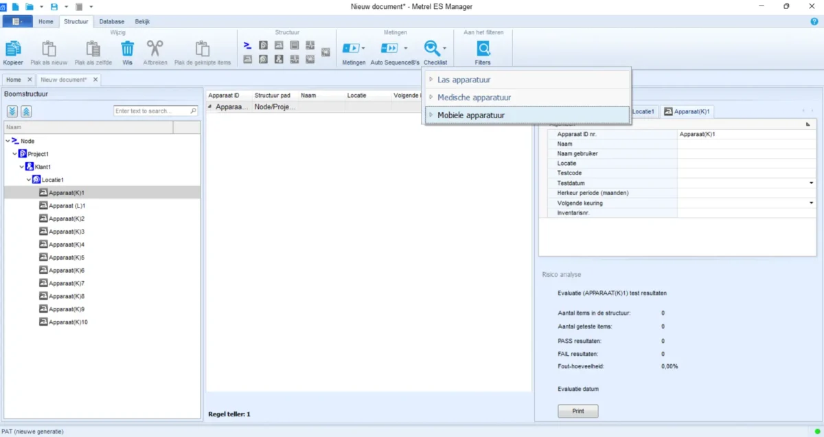 - Voeg metingen toe (dubbelklikken), zoals visuele inspectie, doorgangstest, polariteitstest, risotest, functionele test, etc.
