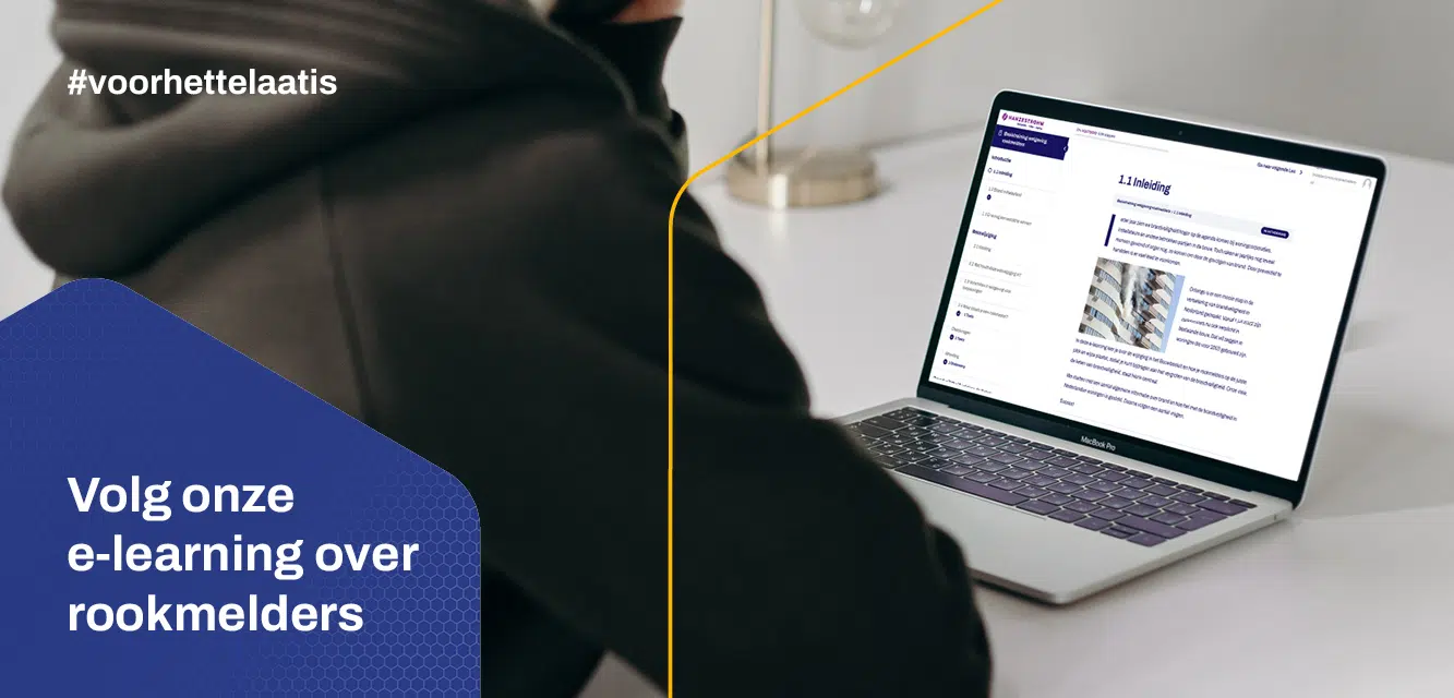 In onze e-learning kom je alles te weten over de nieuwe wetgeving. Heel belangrijk, want deze is anders dan de wetgeving voor nieuwbouwwoningen. Ook leer je hoe je de wetgeving kunt toepassen, hoe een rookmelder werkt, waar je deze het beste kunt plaatsen en hoe je ze aan elkaar kunt koppelen. Zo kun jij jouw klanten straks van het allerbeste advies voorzien over het kiezen en plaatsen van de juiste melders.