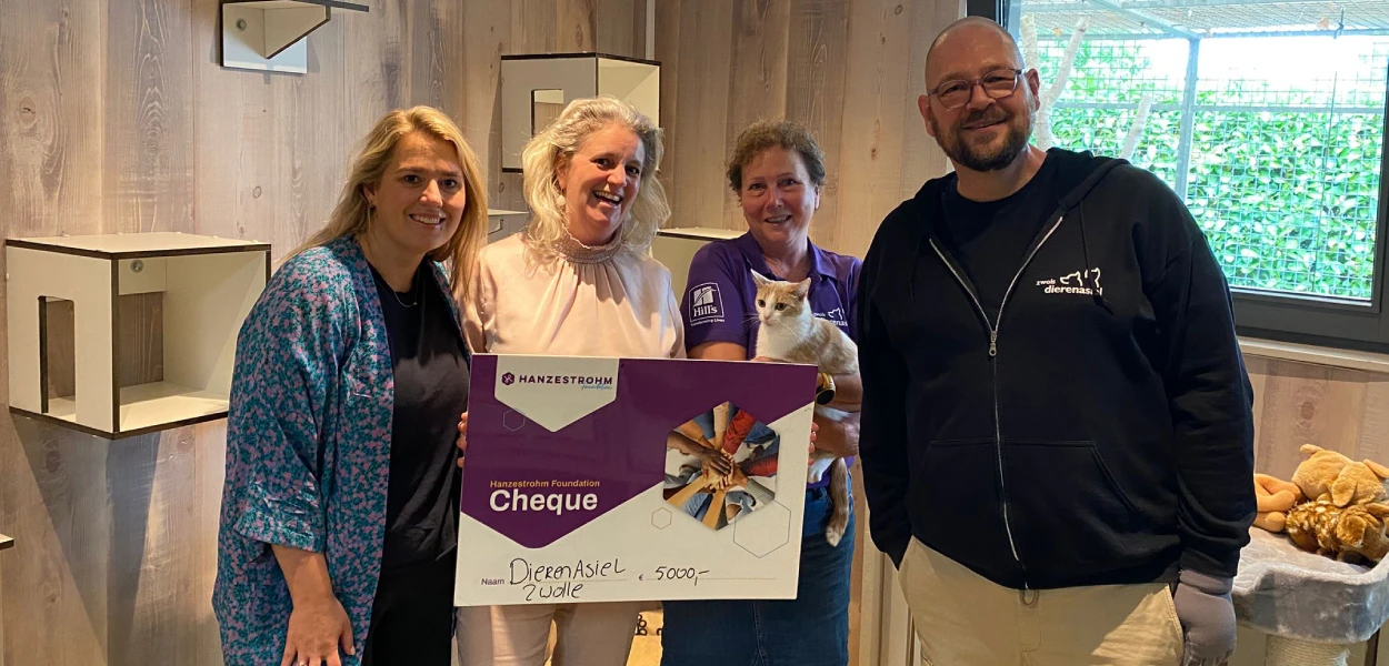 De Hanzestrohm Foundation zet zich in voor natuurbehoud en biodiversiteit. Ook dierenwelzijn in de regio Zwolle hoort daar natuurlijk bij. Daarom hebben Anne Hemmink en Maartje Beeker namens de Foundation een donatie van € 5.000,- overhandigd aan het asiel.