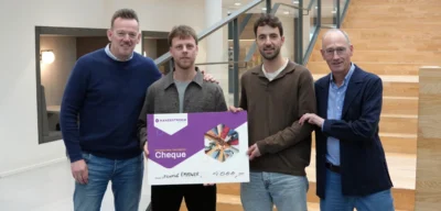 Initiatiefnemers Annemiek van Brussel en Arnold Fransen ontvingen uit handen van Martin Hemmink alvast een cheque voor het eerste jaar ter waarde van € 1.500,-. We kijken uit naar de mooie dingen die de Raakvlak Academie hiermee doet!